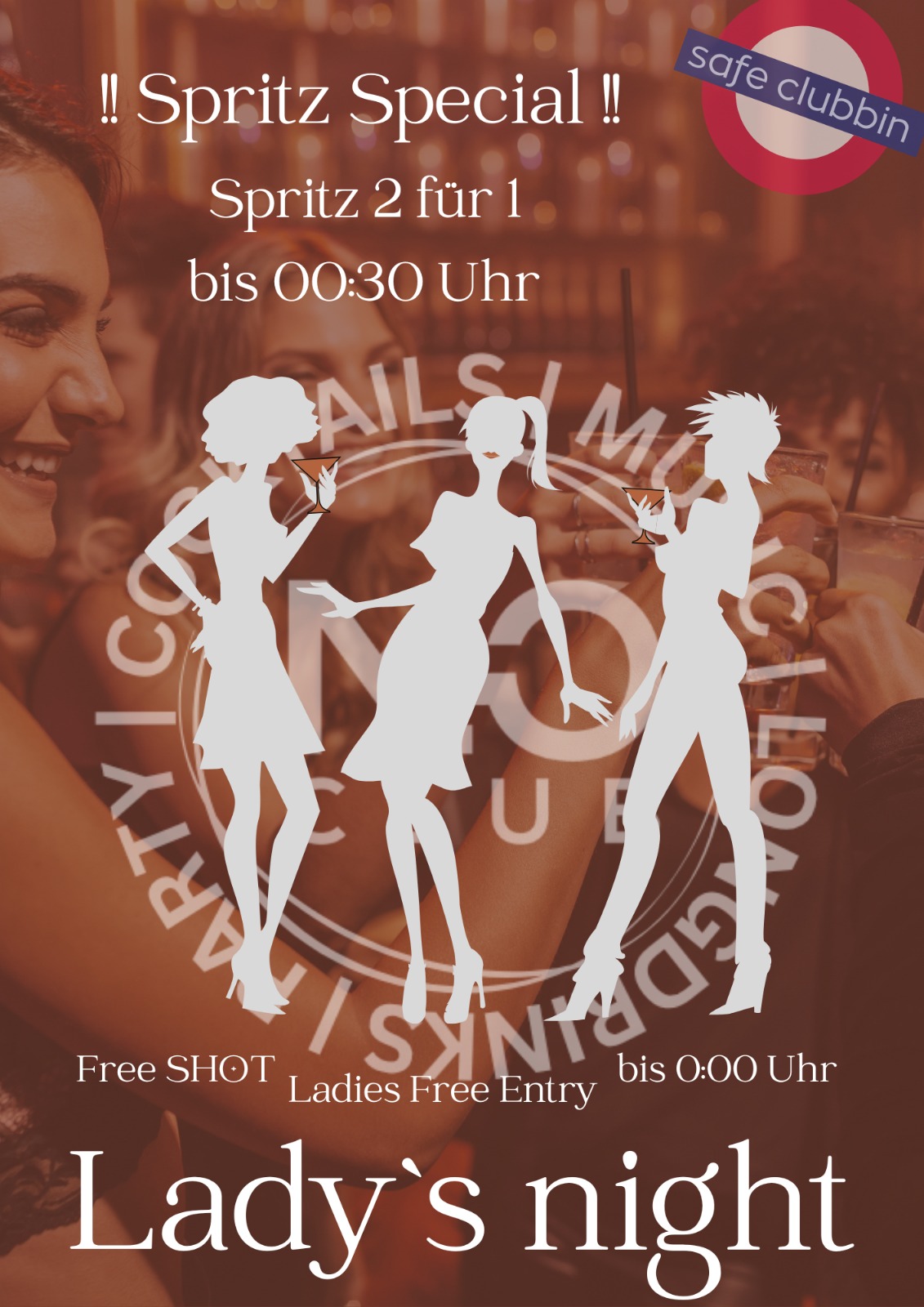 An allen Öffnungstagen haben Frauen bis 00:00 freien Eintritt. Zusätzlich gibt es an allen drei Tagen tolle Happy Hour Angebote.