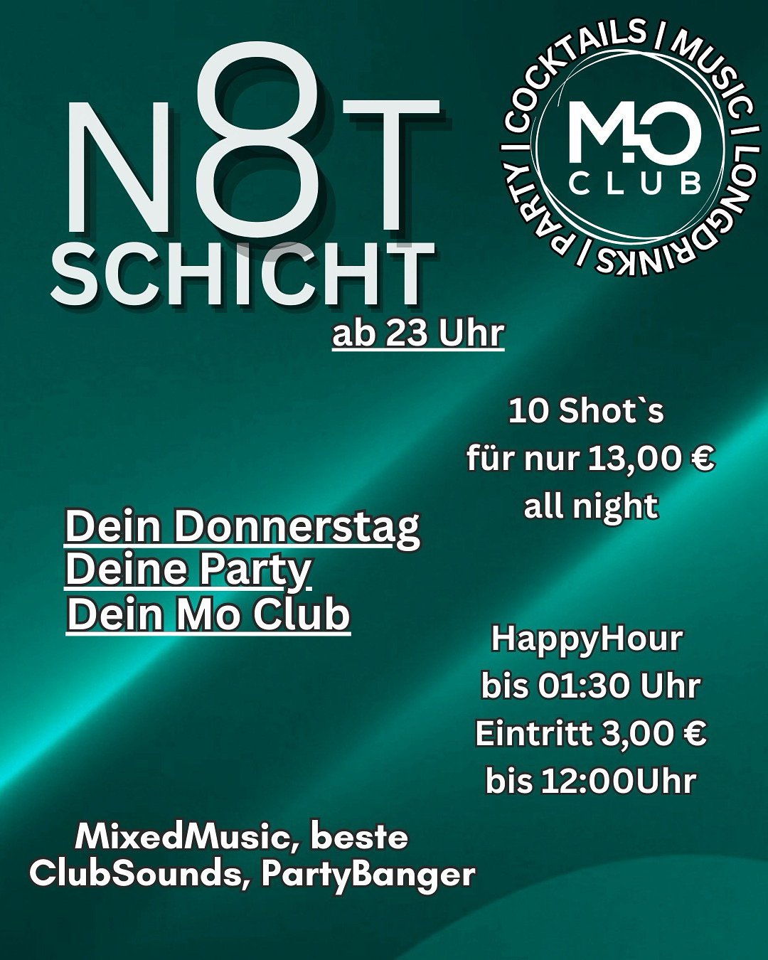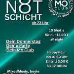 Willkommen im Mo Club – dem ultimativen Club für Nachtschwärmer und Partygänger! Hier ist für jeden etwas dabei, von tollen Getränke-Specials über freien Eintritt für Ladies bis hin zu unschlagbaren Angeboten für Studenten.